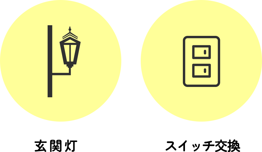 人感センサーライトや玄関灯・門灯、ガレージ照明の設置も可能です。また、スイッチの交換や位置変更、調光スイッチの取付けなど、使いやすさを考えたご提案も行っています。