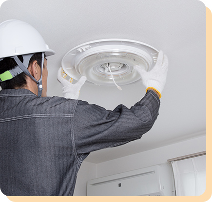 照明器具の交換やLED照明への切り替え、シーリングライトの取付け、ダウンライトの増設など、住宅内外の照明工事に対応しています。